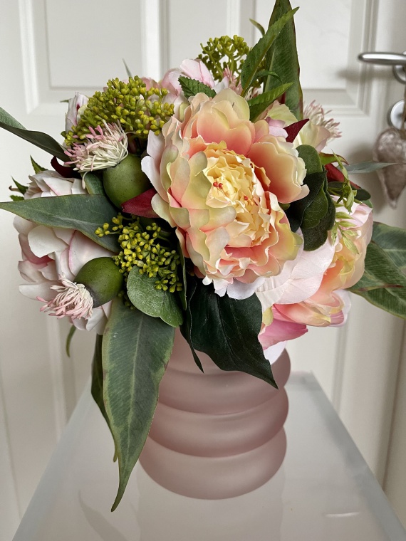 Pfingstrosen | Romantischer Pfingstrosenstrauß mit Fenchel und Eukalyptus, Farben Apricot- Rosé