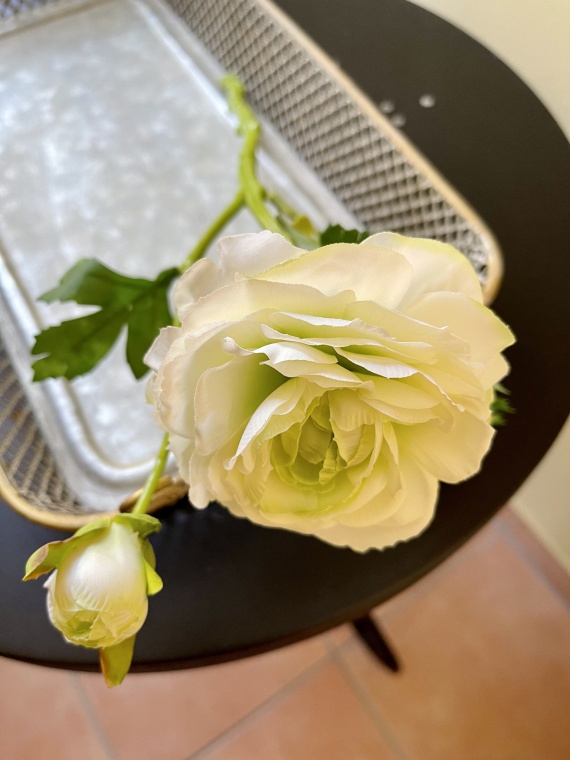Ranunkel mit Knospe Farbverlauf, weiß-hellgrün