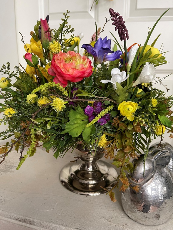 Frühlingsreigen - Tulpen, Ranunkeln, Mimosen, Freesie und Traubenhyazinthen