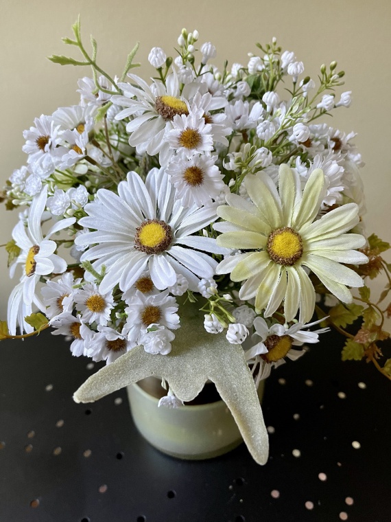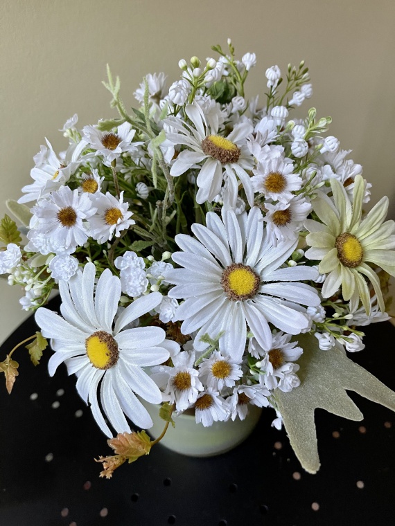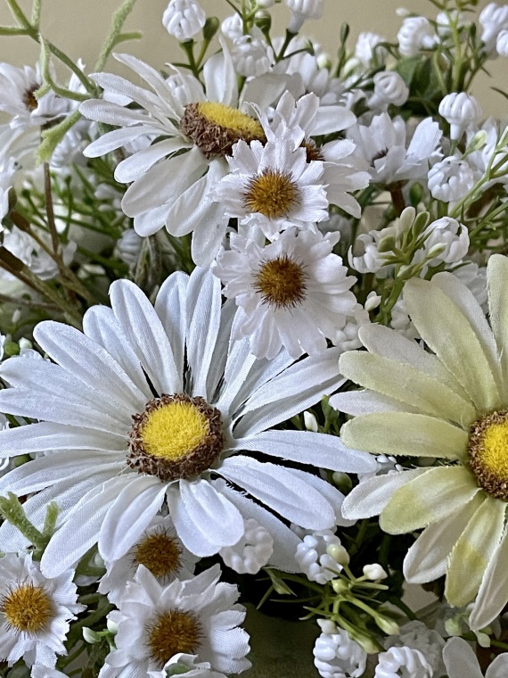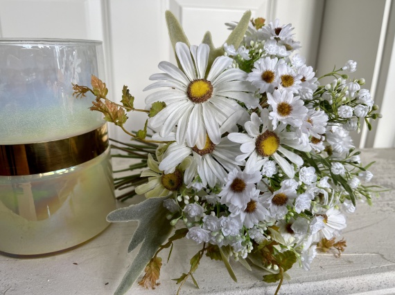 besticht durch seine leuchtend weißen Blüten, gebunden mit kleinen weißen Gypsophilia.