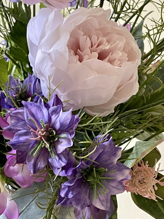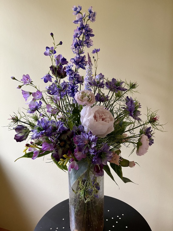 zarte Blüten wie Freesien, Mohn, Glockenblumen, Nigella und vieles mehr in den Farben Purple.