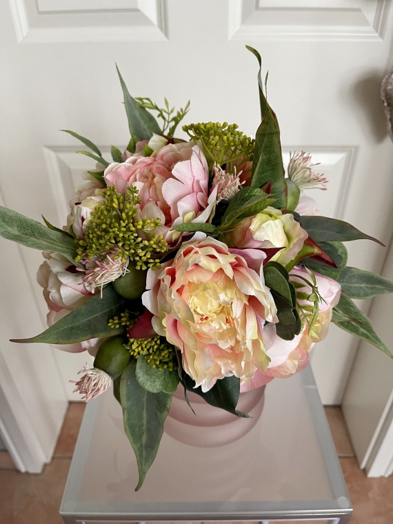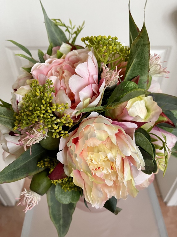 Pfingstrosen | Romantischer Pfingstrosenstrauß mit Fenchel und Eukalyptus, Farben Apricot- Rosé