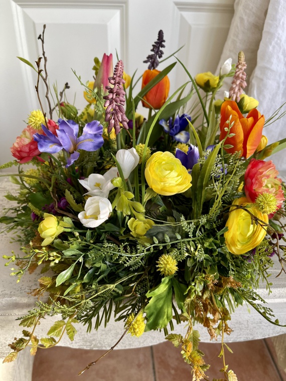 Frühlingsreigen - Tulpen, Ranunkeln, Mimosen, Freesie und Traubenhyazinthen