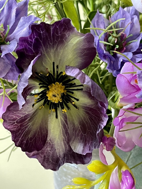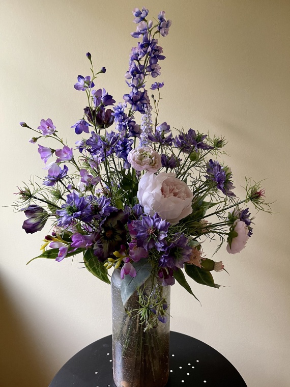 zarte Blüten wie Freesien, Mohn, Glockenblumen, Nigella und vieles mehr in den Farben Purple.